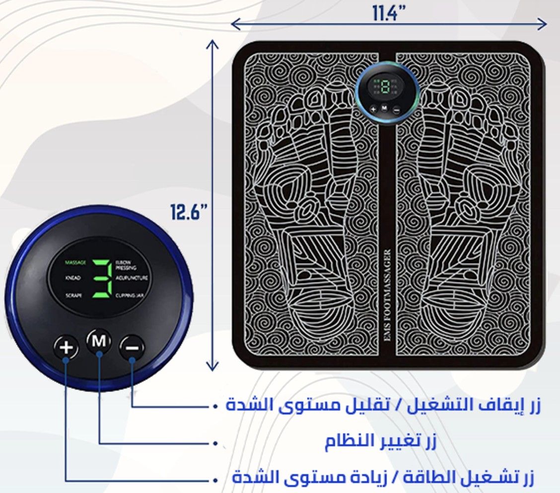 ✅ تقليل الألم والانتفاخ : يمكن للمساج الكهربائي تقليل الألم والانتفاخ في القدمين.